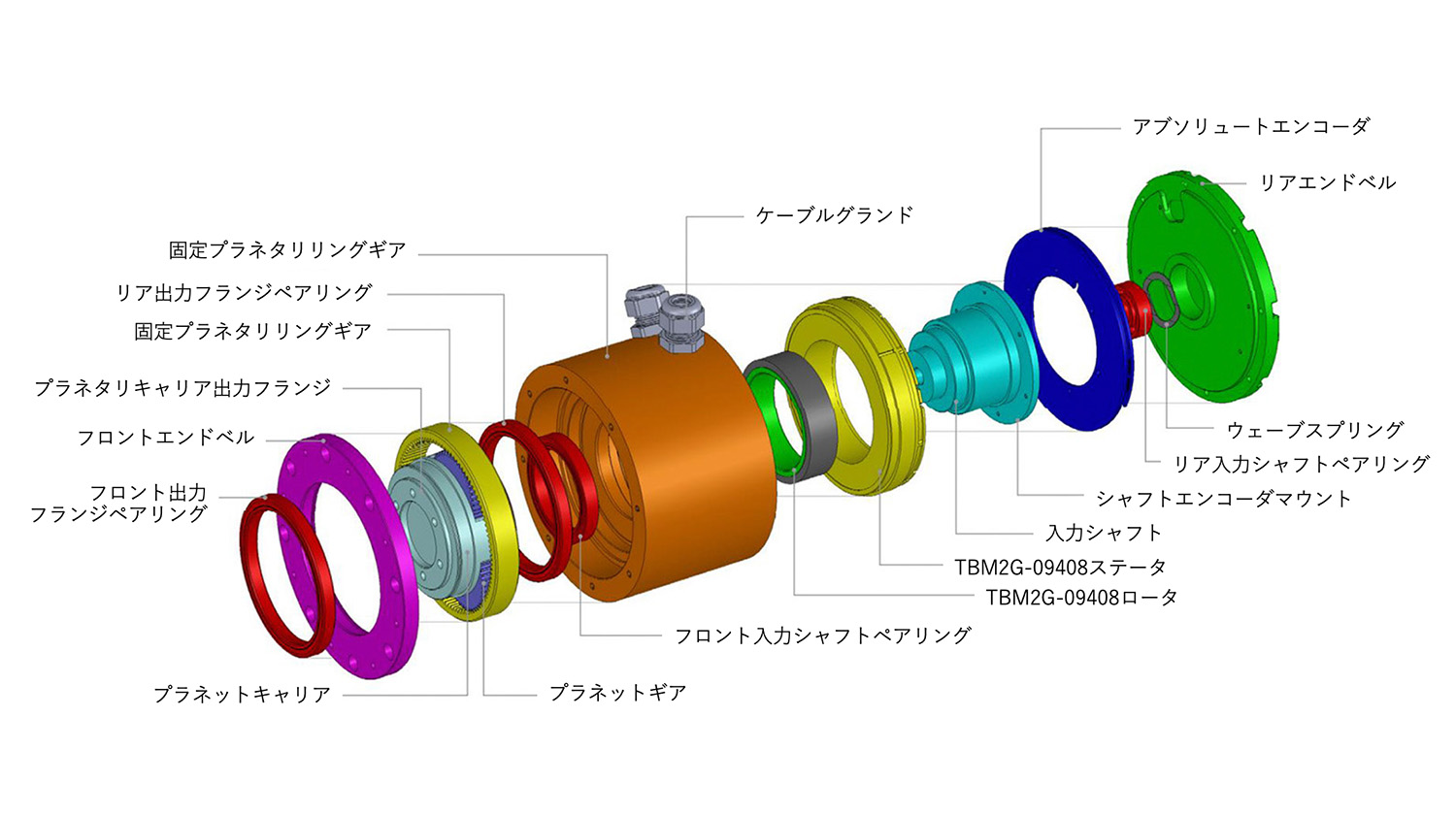 TBM2Gフレームレスモータは、コンパクトでゼロバックラッシュの波動ギア、サイクロイド、スパー、遊星ギアと組み合わせて使用することもできます。 - ブレーキ